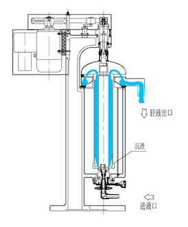 主軸帶動轉鼓繞自身軸線高速旋轉,在轉鼓內形成強大的離心力場。物料由底部進料口進入轉鼓內,在離心力作用下,迫使物料沿轉鼓內壁向上流動。質量輕的液體經轉鼓上部排液口排出,通過集液盤回收;質量重的固體沉積在轉鼓內壁上,形成沉渣層,停機后人工清除。